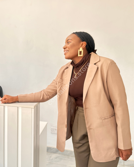 Structured Formal Bossed-Up Blazer - Beige