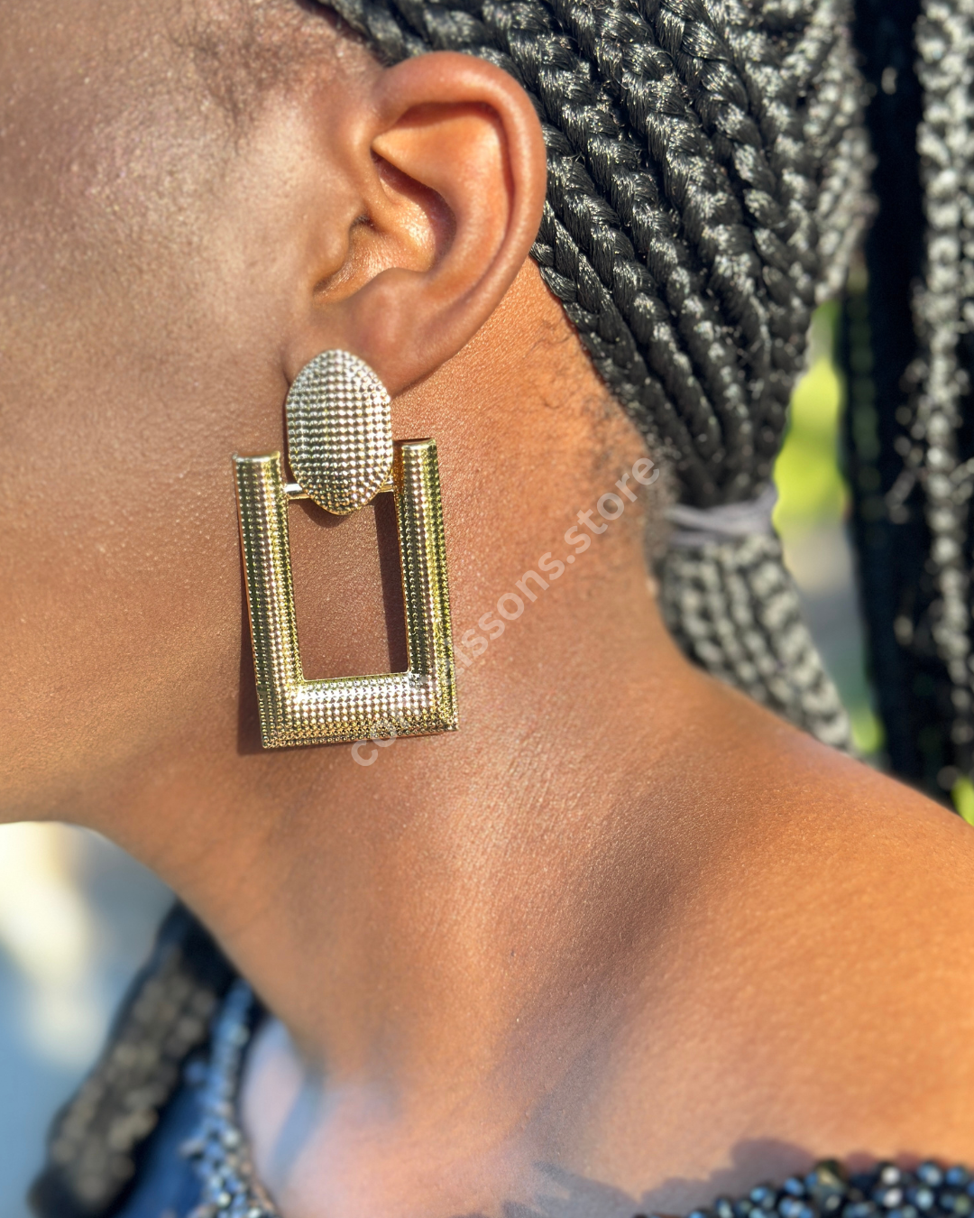 Rectangle Textured Drop Earrings - Gold